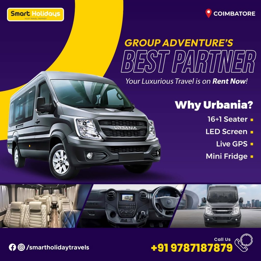 Whether it’s a quick airport transfer or a multi-day pilgrimage, Smart Holiday Travels has a commercial vehicle to suit your needs. Their fleet combines comfort, reliability, and flexibility, making them a top choice in Coimbatore. For a stress-free travel experience, book your vehicle with Smart Holiday Travels today at smartholidaytravels.com.
